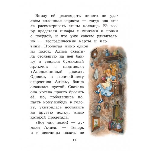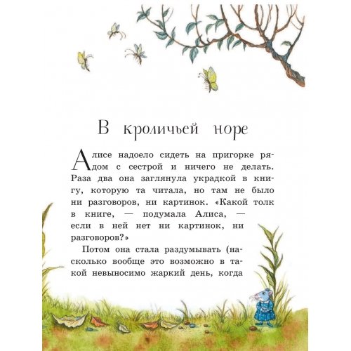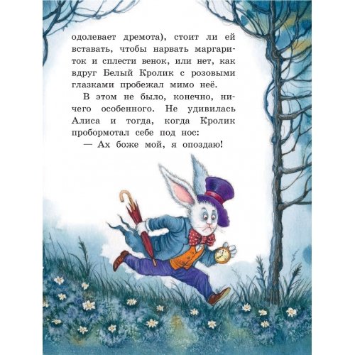 "Алиса в Стране чудес" - удивительная и невероятная сказка Льюиса Кэрролла, наполненная тёплым юмором, приключениями и превращениями. Любопытная девочка Алиса не задумываясь побежала за Белым Кроликом и внезапно оказалась в чудесной стране. Исчезающий Чеширский Кот, пирожки для увеличения роста, безумное чаепитие в компании Шляпника и Мартовского Зайца - здесь столько всего интересного!Книга с крупным шрифтом в классическом переводе Александры Рождественской подходит для самостоятельного чтения и радует прекрасным, понятным детям языком. Приготовьтесь разучить "Кадриль Омаров", поиграть в крокет с Королевой и совершить необыкновенное, полное весёлых приключений путешествие.