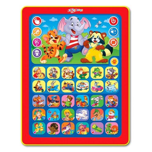 Этот интерактивный планшетик подарит детям много приятных моментов. Знаешь, какой голос у белочки и зайчика? Как звучит скрипка? Как гудит самолёт? А кто поёт песенку «Чунга-чанга»? Играя в угадайку, любознательный малыш познакомится с животными, транспортом и музыкальными инструментами, послушает мультсказки ("Мама для мамонтёнка" и "Трям! Здравствуйте") и 20 песенок любимых героев. Всего в планшетике собрано 4 игры: «Чей голос?», «Угадай звук!», «Угадай песенку», «Весёлые загадки». Бонус от Азбукварика – интерактивная азбука для смартфона или планшета, с которой ребёнок выучит буквы легко и быстро! Ищи QR-код для скачивания на упаковке.