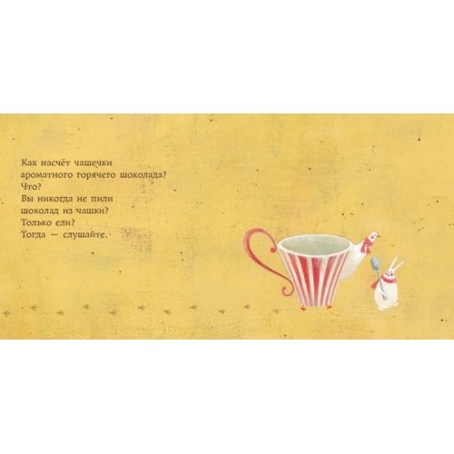 Очаровательный кролик станет для вас проводником в мир невероятно вкусного горячего шоколада, расскажет о его разновидностях, а может, и вдохновит на собственный рецепт. Сатоэ Тонэ - японская художница и автор детских книг. Лауреат Международной премии в области иллюстрации Книжной ярмарки в Болонье (2013 г.), премии Международной выставки детской книги в Лиссабоне (2104 г.) и других профессиональных премий. Изучала графический дизайн и иллюстрацию в Kyoto Seika University. Участник выставок в Италии, Тайване, Венгрии, Японии. В настоящее время живёт и работает в Италии. В России книги Сатоэ Тонэ выходили в издательстве "Поляндрия".