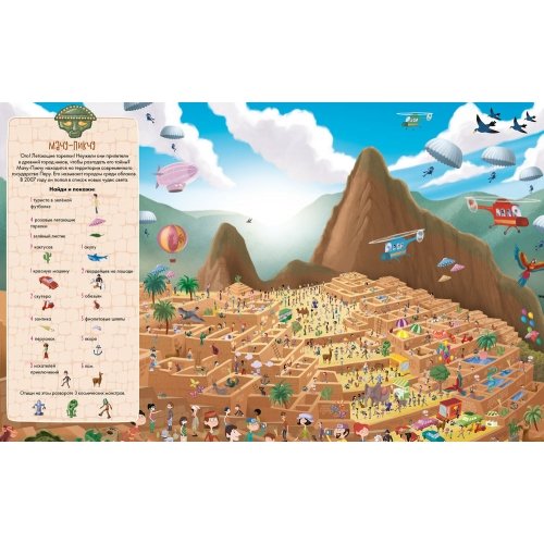 Возраст 6+3 фишки:- Популярная игра "Найди и покажи" - Самые интересные достопримечательности на панорамной картинке- Увлекательная книга-игра для детей и взрослыхХотите отправиться в древний город инков Мачу-Пикчу?