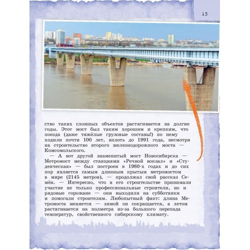 Вы держите в руках не просто книгу, а самый настоящий путеводитель по Новосибирску для детей. С ним вы отправитесь в увлекательное путешествие по главному городу необъятной Сибири. Вместе с героями книги познакомитесь с его историей и посетите самые интересные места. За это время вы узнаете, почему главный проспект называется Красным, где найти ученых, почему в Новосибирске был центр Российской империи, в чем тайна герба города, а также пройдетесь по самому длинному в мире метромосту, посетите самое большое театральное здание в России, посмотрите на редких животных в знаменитом новосибирском зоопарке и даже побываете на море посреди Сибири!