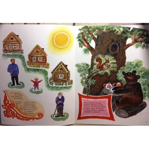 Под стать тексту яркие, чёткие, "правильные", то есть понятные ребёнку иллюстрации художника Алисы Порет. В них есть всё, о чем говорится в потешках: сами герои - три Егора, ёжики, собачки, мишки, котики, дрозды… - и окружающие их предметы: книжки, ватрушки, калачи, щетки-гребёнки, рукавицы, чайники… Их можно бесконечно рассматривать и обсуждать, формируя понятийный багаж и речевую матрицу ребёнка.